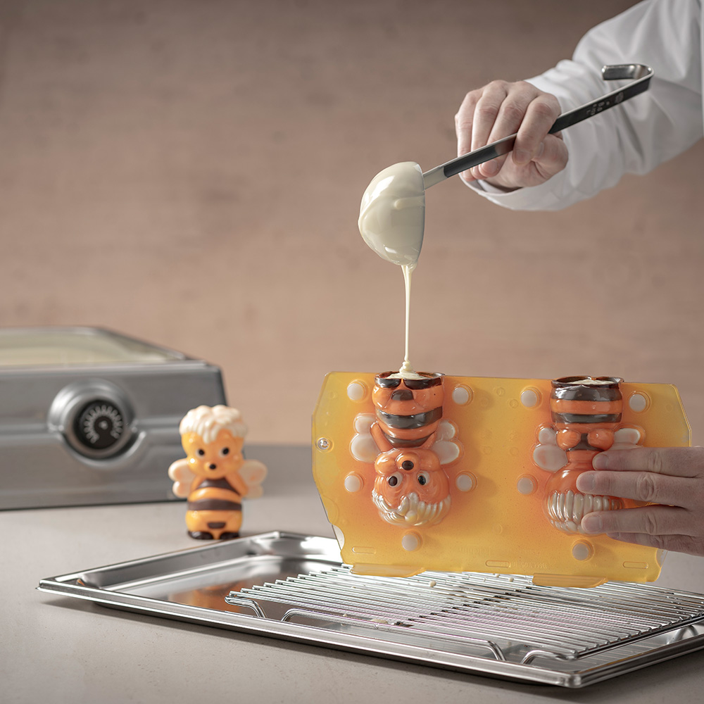 Schokoladen-Giessform Biene Lilli the bee zum Ausgiessen mit Schokolade 2er Giessform mit Magnetverschluss Grösse Figur: 120 mm Gegossene Figur: ca 70g