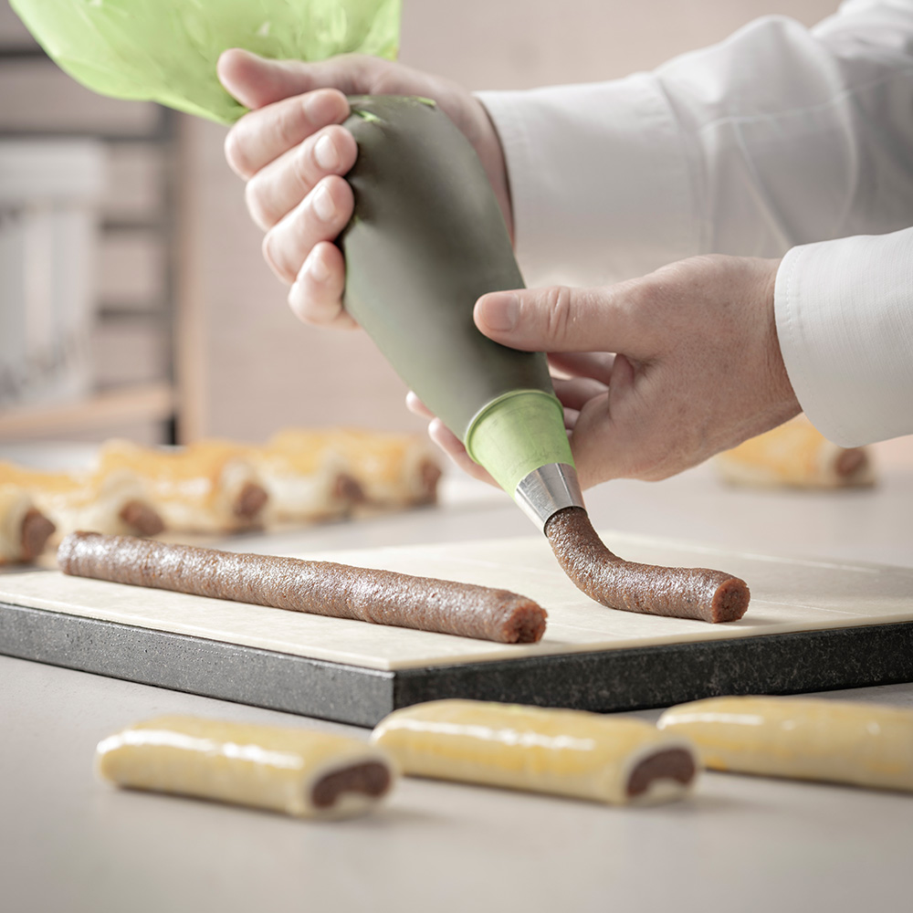 As a filling for all types of doughs, to add moisture to compact cake mixtures and doughs.